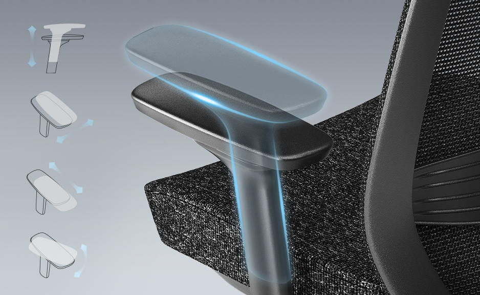 Armrests:4D coordinated armrests (up and down, left and right, front and back, inward and outward