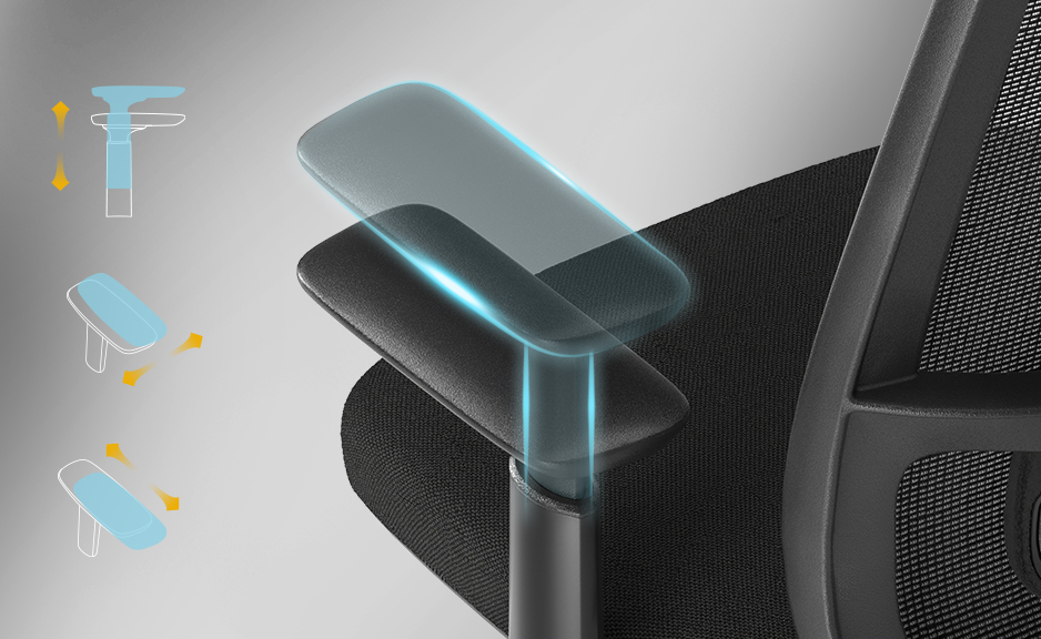 Armrests:4D coordinated armrests (up and down, left and right, front and back, inward and outward