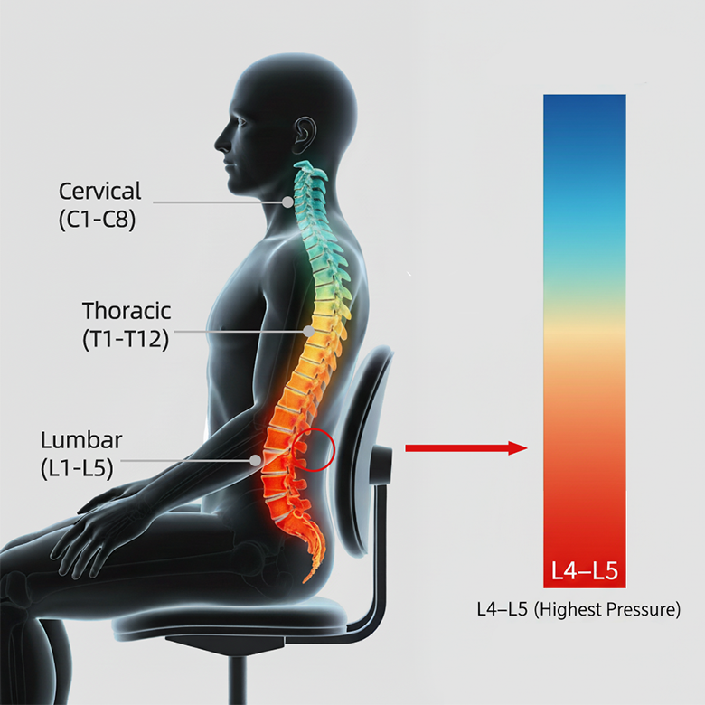 Among these segments, the lumbar spine (L1–L5) plays the most critical role in daily posture and comfort.